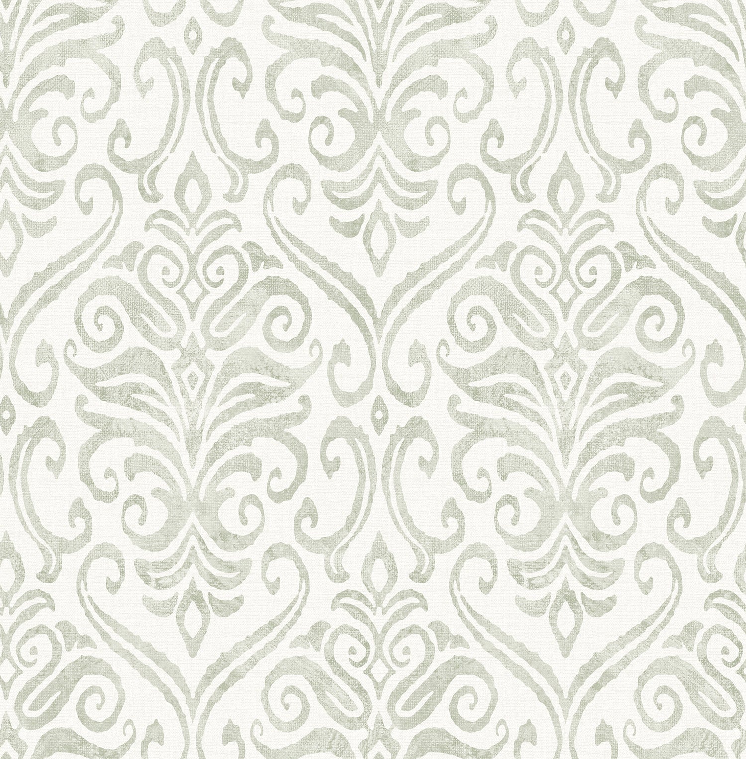 Adavu Sage Damask Wallpaper - Scroll Wallpaper - Sage is backordered and will ship as soon as it is back in stock.