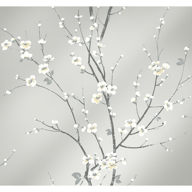 Monterey Silver Mist Floral Branch Wallpaper - Floral Wallpaper