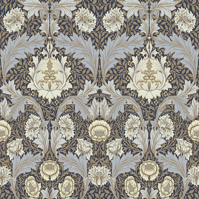 Myrtle Blue Floral Ogee Wallpaper - Damask Wallpaper