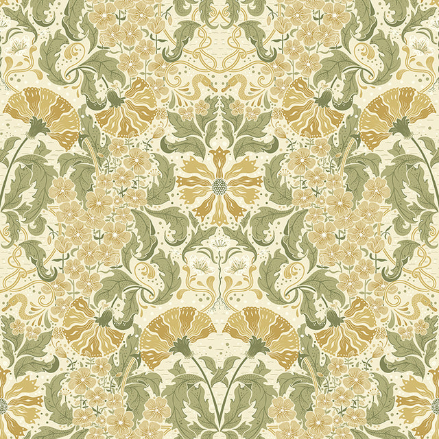Ojvind Gold Floral Ogee Wallpaper - Scroll Wallpaper