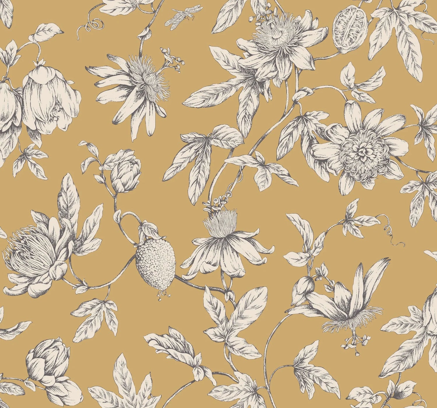Passion Flower Toile Wallpaper by Toiles Resource Library - Orchid is backordered and will ship as soon as it is back in stock.