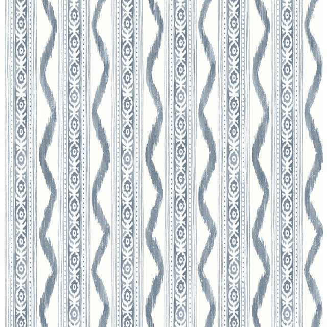 Rhys Blue IKAT Stripe Wallpaper By Erin Gates - Stripes Wallpaper