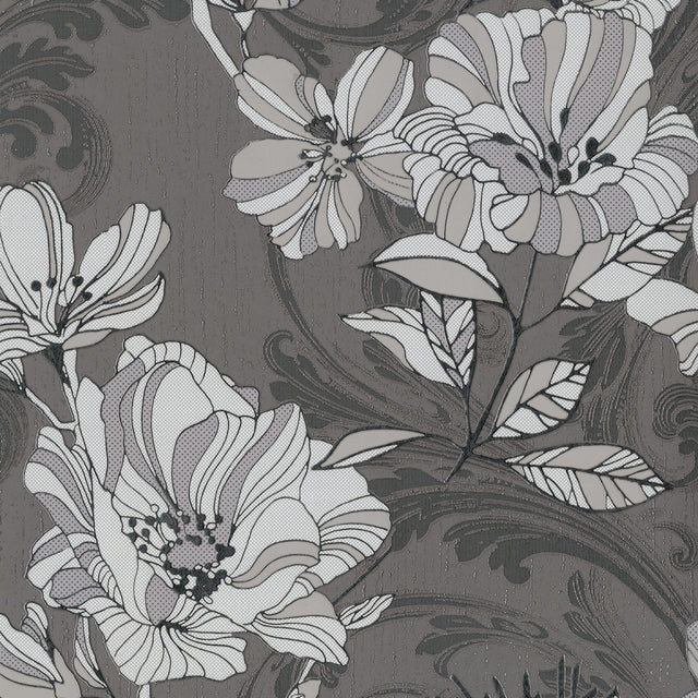 Selene Silver Mucha Floral Wallpaper - Scroll Wallpaper