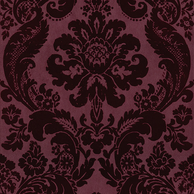 Shadow Merlot Flocked Damask Wallpaper - Damask Wallpaper