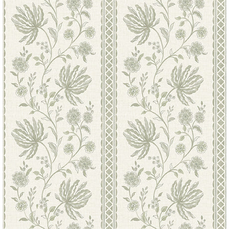 Edgemoor Sage Jacobean Stripe Wallpaper - Jacobean Wallpaper