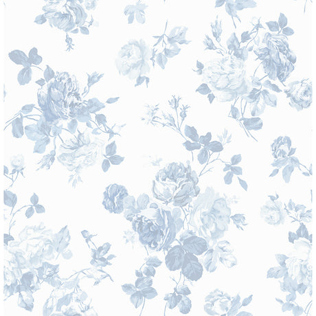 Everblooming Rosettes Sky Blue Cabbage Rose Bouquets Wallpaper - Toile Wallpaper