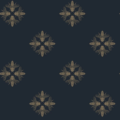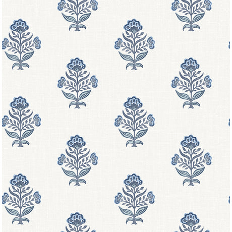 Hollyhock Blue Floral Crest Wallpaper - Floral Wallpaper