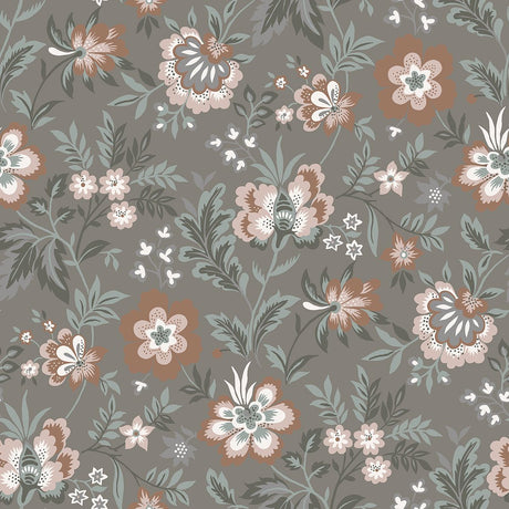 Athena Grey Floral Wallpaper - Jacobean Wallpaper