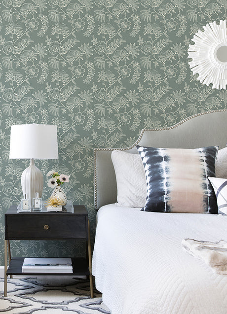 Maeve Sea Green Jacobean Trail Wallpaper - Jacobean Wallpaper