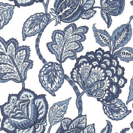 Mid Summer Jacobean Wallpaper- White/Blue - Jacobean Wallpaper