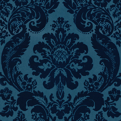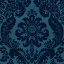 Shadow Blue Flocked Damask Wallpaper - Scroll Wallpaper