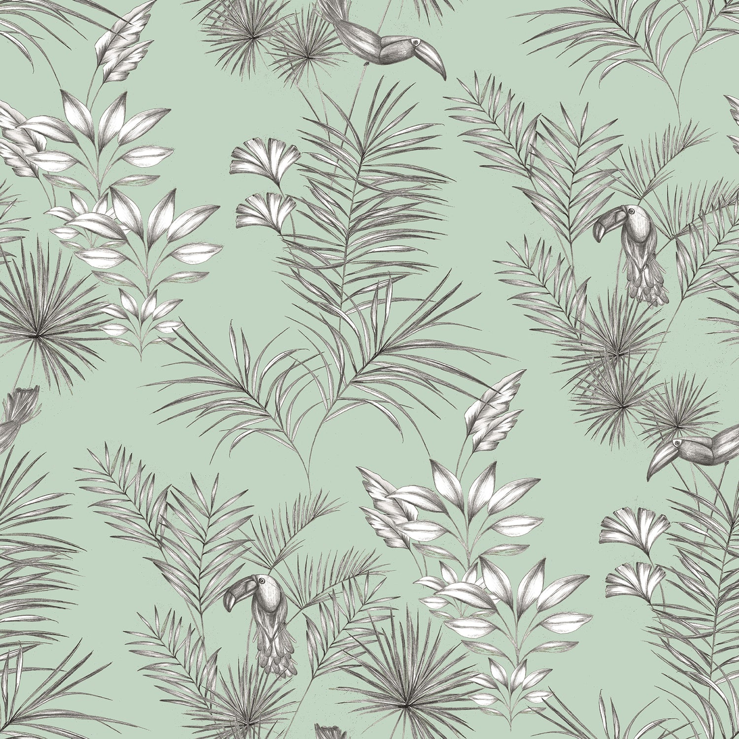 Shelly Mint Toucan Toile Wallpaper - Toile Wallpaper