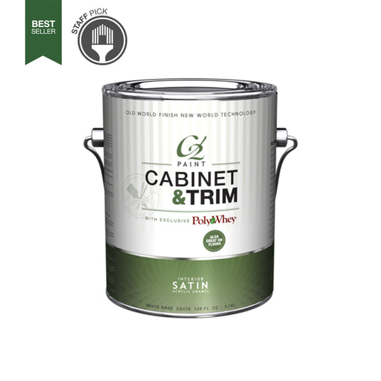 Achieve a flawless, durable finish on cabinets and trim with C2's revolutionary PolyWhey® paint. This unique formula, made with recycled dairy whey protein, provides exceptional adhesion to bare wood, painted wood, and laminate, creating a smooth, porcelain-hard surface. It's no wonder this is our best-selling and top-rated cabinet and trim paint. Satin is the preferred finish for most applications, but other sheens are available to suit your project.