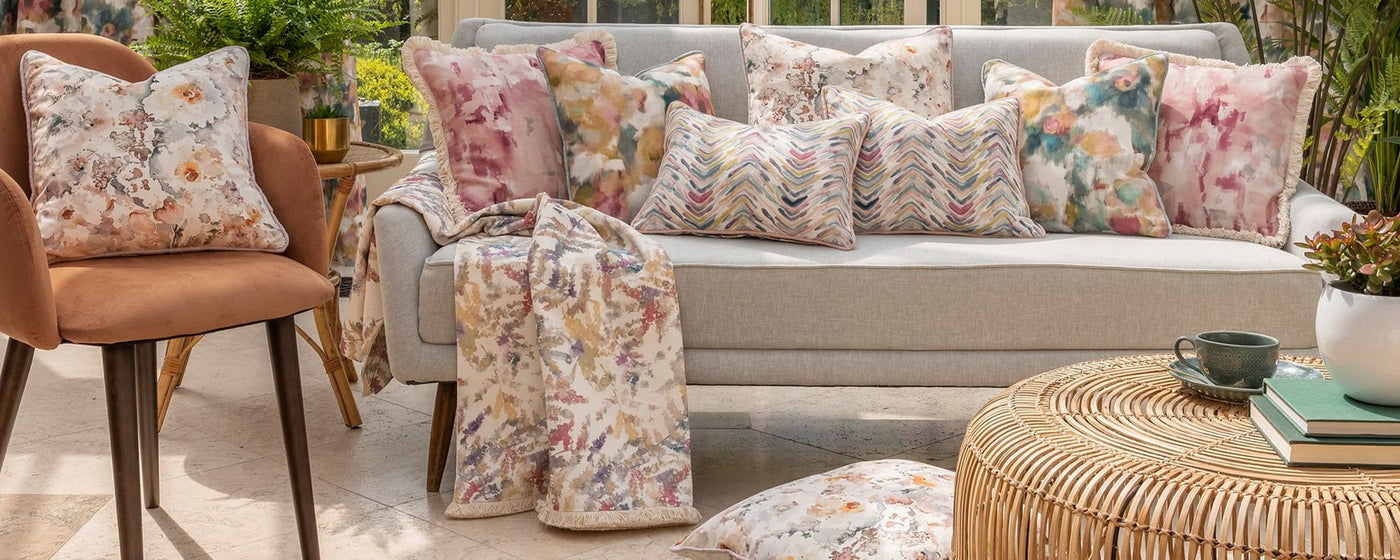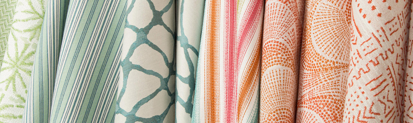 A broad selection of designer fabrics for any decorating need such as draperies, cushions, and bedspreads.