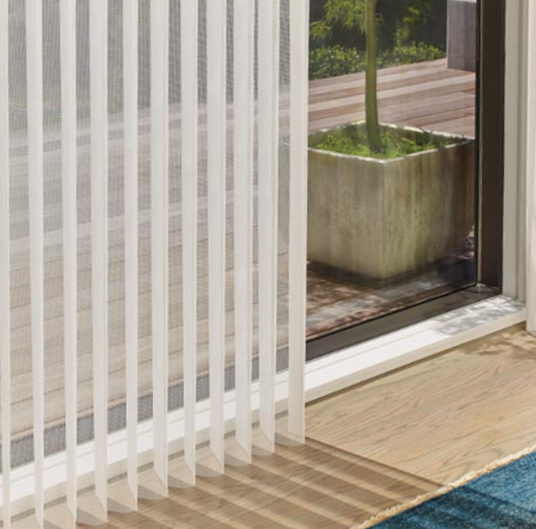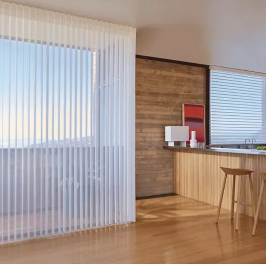 Luminette was designed specifically for the challenges of sliding doors and large glass expanses. Traditional vertical blinds look dated and offer limited light control. Drapery can be beautiful but it provides all-or-nothing coverage. Luminette delivers the best of both worlds.