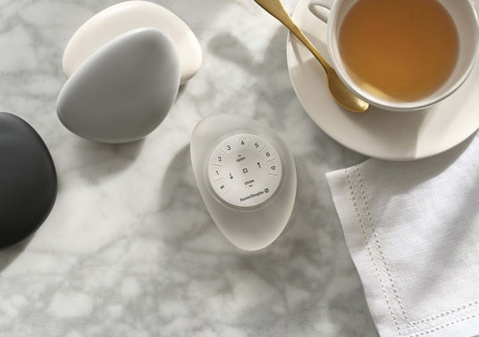 - Pebble® Remote: Elegant, portable remote in colours to match your décor. Control individual shades or entire rooms with a single press.