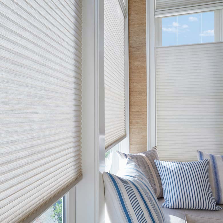 We carry three collections of cellular shades: Duette Honeycomb Shades, Applause Honeycomb Shades and Sonnette Cellular Roller Shades.
