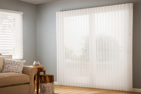 - Luminette® Privacy Sheers: The ultimate in elegant verticals. Soft, sheer fabric panels with rotating vanes combine the beauty of drapery with the function of blinds. Perfect for wide windows and sliding doors.
