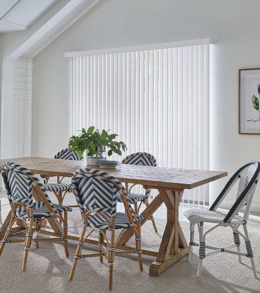 The rotating louvres of vertical blinds give you exceptional control over light and privacy. Use the wand to tilt the vanes to any position: