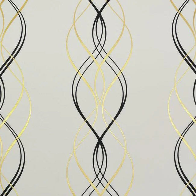 Aurora Wallpaper by Antonina Vella Wallpaper - Black/White/Gold is backordered and will ship as soon as it is back in stock.